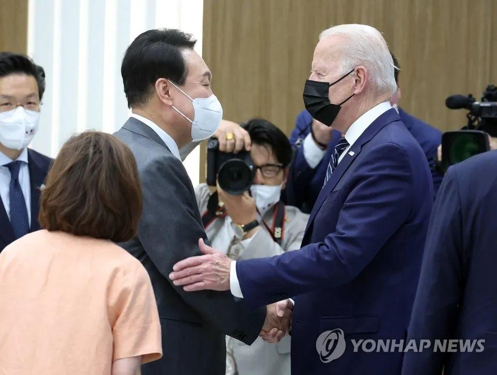 拜登和尹錫悅5月20日在三星電子半導體工廠首次會面。圖自韓聯社 報道稱,日本《產經新聞》台北支局長矢板明夫5月20日在臉書發文,聲稱美國總統拜登今天來訪亞洲,是為俄烏戰爭之後的國際秩序布局而來。 “這次訪問,可能將對今後的國際形勢有深遠的影響。” “拜登第一站先去韓國見新總統尹錫悅,主要是為了加固對中國的包圍網”。 矢板明夫還聲稱,拜登接著前往日本拜訪首相岸田文雄“商量怎麽對付中國”,因為對美國來說,在俄烏戰爭的戰場上,目前已經掌握“絕對的主動權”,“就像玩遊戲打怪,俄羅斯這個怪已經打得差不多了,接下來,要開始著手準備和最大的BOSS交手了”。 矢板明夫臆想道,“中國方面對此非常緊張”,“中國最害怕的是,日美在首腦會談後的共同聲明中,在台灣問題上有所突破;也擔心拜登訪問日本後心血來潮,抽半天時間到台北走一走。”