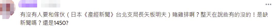 有網友問有沒有人要跟矢板明夫賭雞排:他整天在說些有的沒的!是缺新聞嗎?還是1450?↓