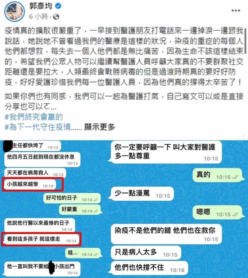 郭彥均臉書截圖 面對親綠網軍聲勢浩大的“討伐”,郭彥均日前被迫删文致歉。然而,事情并未就此結束,台“行政院長”蘇貞昌28日親自下場,聲稱這種“不實謠言”有很明顯的操作痕跡,非常不法、不宜,將加以究責查辦。 台“疫情指揮中心”指揮官陳時中則放話,“查明後將依法最高可罰300萬元(新台幣),或3年以下有期徒刑或拘役”。 民進黨當局這番言論激起島內網民的極大不滿,有人憤怒表示,“以蘇貞昌的標準,死幾個小孩才算多?只要死的是別人的小孩都不嫌多!”“綠色恐怖,太可怕了!” 據台媒報道,台灣這一波新冠疫情至今已造成10歲以下兒童22例重症、10例死亡,染疫兒童死亡率高達十萬分之五,是日本的10倍、韓國的8倍。 國民黨前“立委”蔡正元29日在臉書表示:“哀!拜登的‘毛孩子’走了,蔡英文發文哀悼!台灣的孩子走了,查辦‘說很多孩子’的人。” 有島內網民無奈表示:“台灣人不如美國狗!”“恐嚇自己人最在行!”“她需要選票的時候,自然會關心人民。” 去年6月,蔡英文得知美國總統拜登的愛犬“冠軍”(Champ)去世,特意在拜登的緬懷推文下回覆“為您失去所愛感到難過”(I’m so sorry for your loss)。當時台灣正爆發一波疫情,且有超過500人染疫身亡,彼時就有網民怒批蔡英文:“台灣500人的命難道不如一隻美國狗?”# 【編輯:李雪萍】