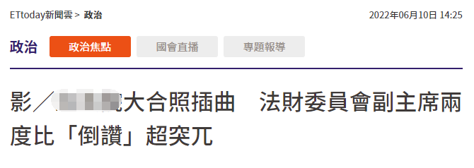 (台灣“ETtoday新聞雲”報道截圖) 據台灣“ETtoday新聞雲”報道,法國一些官員今天(6月10日)參觀了台灣立法機構。不過,一行人在議場大門外合影時,法國財政委員會副主席艾伯雷卻兩度比“倒讚”。