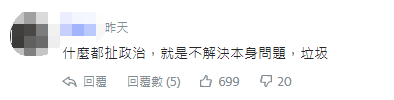 有網友痛批台灣綠營“什麼都扯政治,(但)就是不解決本身問題”。