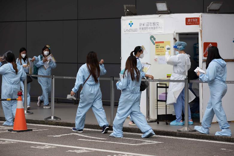 6月17日,入境的外籍勞工排隊等待深喉唾液採檢。香港中通社圖片 新增本土病例年齡介於未滿5歲至90多歲以上,病例分布以台中市5312例、高雄市5280例、新北市4267例為多。 新增144例本土死亡病例年齡介於20多歲至90多歲以上,皆屬重症個案,其中139例具慢性病史、91例未完整接種3劑疫苗。 截至目前,台灣地區累計確診新冠肺炎3330695例,其中本土病例3316782例。確診個案中累計5365例死亡。(完) 【編輯:胡雪石】