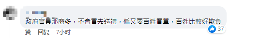 有網友則發出靈魂質問:“政府官員那麼多,不會買去送禮,偏又要百姓買單”,質疑是否台民眾比較好欺負。