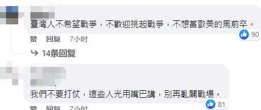 (台灣“中央社”報道) 台灣“中央社”還“興奮”稱,加入烏克蘭前線作戰,除了展現台灣人“助人助己”精神、爭取他國人民對台支持外,也讓台籍志願兵有機會親身體驗戰爭,獲取寶貴經驗。 譬如稱“外國士兵承諾支援台灣”的陳廷偉,就描述了所在小隊躲藏區域遭到轟炸,差點命喪炮火的驚險經歷。他說,在烏克蘭學到的最重要經驗,是在戰場上的敏捷性。 這篇採訪內容經台媒報道後,也很快引來台灣網友們的熱烈討論。 有人直斥台灣民進黨當局和美西方輿論“唯恐天下不亂”!表示台灣不想要戰爭,也不想挑釁大陸,更不歡迎挑起戰爭,不想當歐美的馬前卒,“挑動戰爭的永遠是不上戰場的人”!