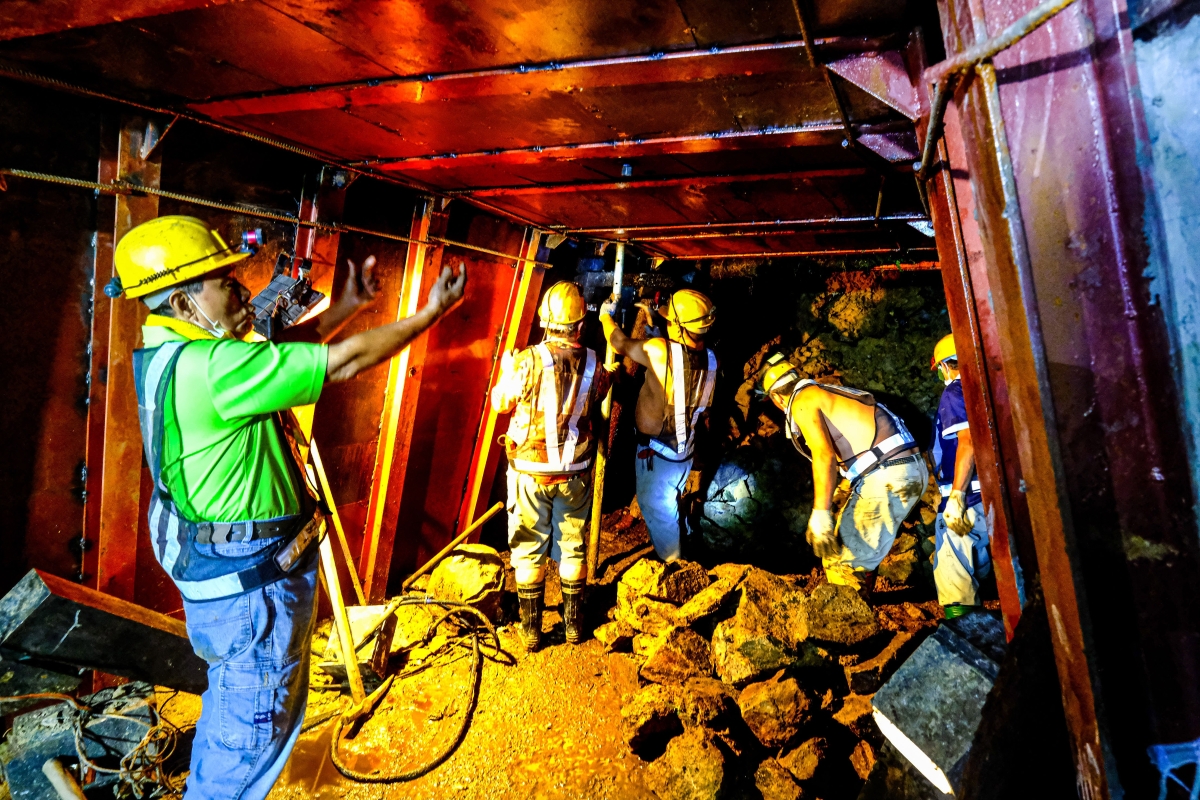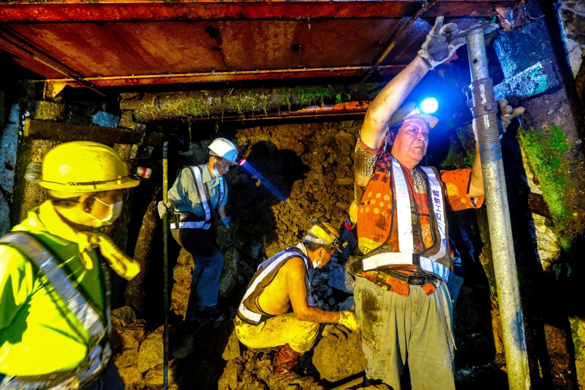 資深的老礦工們運用大家的經驗進行坑道修繕工程。