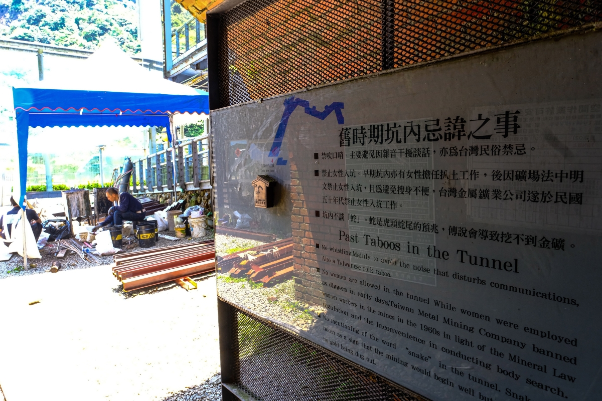 坑道口還立了一塊牌子,說明了過去一些礦坑內的禁忌,例如禁止吹口哨、女性禁止入礦坑、不可說“蛇”等。 【編輯:洪少葵】