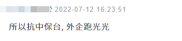 有台灣網友直言,民進黨鼓譟“抗中保台”,並將台海局勢日漸緊張的原因歸咎大陸,最終只會搬起石頭砸自己的腳,外企跑光光。