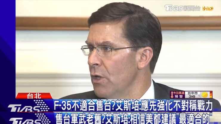(圖:台灣“TVBS”新聞網) 據報導,美國前國防部長埃斯珀(Mark Esper)日前率團到訪台灣,公然對台灣問題指指點點,稱台灣應將義務役延長到1年以上,且“不分男女、全民皆兵”,並鼓動增加防務預算,強化所謂“不對稱戰力”。 對此,台灣民進黨當局並未正面回應,只是卑躬屈膝地說著“感謝關心”,但島內輿論卻是罵聲一片,批評美國為了多賣軍火竟然要推台灣民眾上戰場。 然而,埃斯珀卻不以為意,甚至在訪台最後一天(7月21日),在接受媒體聯合採訪時仍大放厥詞,稱台灣應該研究烏克蘭如何採用“不對稱戰力”與俄羅斯作戰。 不過,很快,在這個聯合採訪中,尷尬的一幕出現了! 由於此前有美籍軍事專家披露,台灣2002年曾向美方遞送採購F-35戰機的意向書,但美國至今拒售。 因此,在聯合採訪時,就有台灣記者問到“美國F-35戰機是否是台灣的關鍵性武器”這個問題。 但埃斯珀的反應卻很耐人尋味,先是扯到“台灣首先應該怎麼做”,然後說,F-35戰機是昂貴的載台,是為了傳統作戰而打造的。