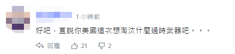 有台灣網友則表示,埃斯珀說了這麼多,都掩蓋不了美國售台灣武器老舊的事實,“直說你美國這次想淘汰什麼過時武器吧…”