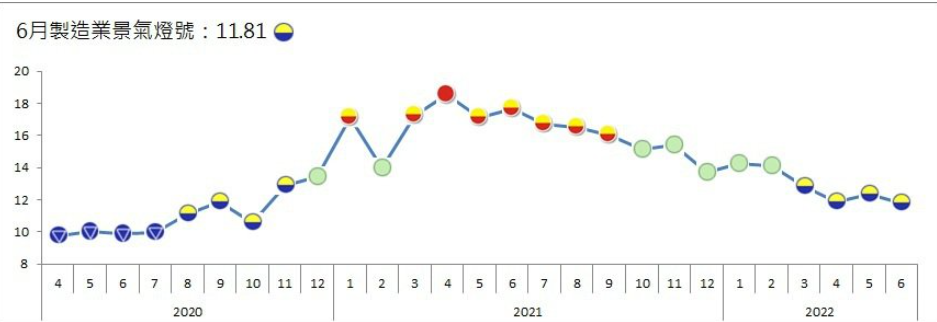台灣經濟研究院29日發布6月製造業景氣燈號。由於全球通貨膨脹壓力未減,使終端需求轉弱,台灣6月的製造業景氣信號值為11.81分,較5月的12.34分,減少0.53分,燈號亮出連續第4個代表低迷的黃藍燈。 ● 台教師資格考試5504人過關 通過率62.03% 2022年度台灣高中以下學校教師資格考試29日公佈成績,8873名到考考生中,成績符合通過條件的共5504人,通過率為62.03%。在台灣要成為老師,教師證書只是入場券,之後還需參加教師甄試,才能取得正式教職。(香港新聞網30日綜合) 【編輯:鄭竣凱】