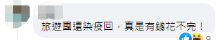 有網友批評,“旅遊團還染疫回,真是有錢花不完!”“浪費錢,又沒事去帶病毒回來。”“又把病毒帶進台灣。” ↓