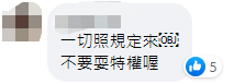 更有人提醒他,“一切照規定來,不要耍特權。” ↓