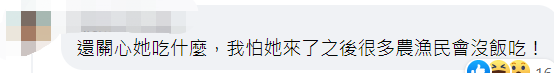 網友評論 “還關心她吃什麼?”也有網友哀歎佩洛西一旦來台會進一步加劇兩岸局勢緊張,影響島內民生,“我怕她來了之後很多農漁民會沒飯吃!”