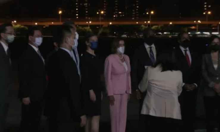美國眾議院議長佩洛西8月2日晚抵台。(台灣當局外事部門直播畫面) 不顧中方強烈反對和一再警告,美國眾議院議長佩洛西執意率團竄訪台灣地區,並於昨日(8月2日)深夜抵台。 據悉,佩洛西此行受台灣民進黨當局邀請,在台期間會與民進黨當局領導人蔡英文等會面,8月3日下午5時離開。