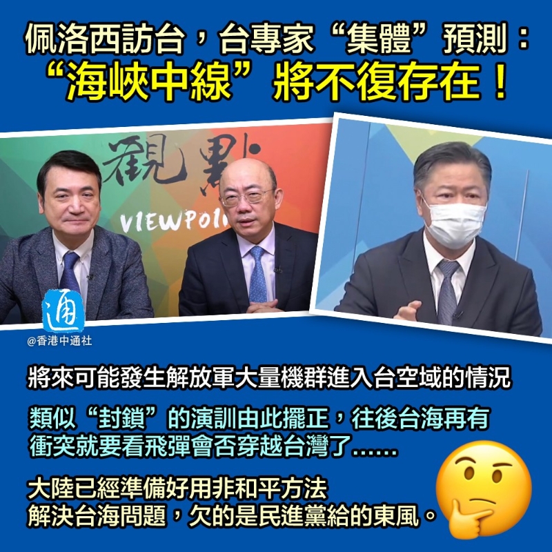 佩洛西訪台 台專家“集體”預測:“海峽中線”將不復存在!分享到: