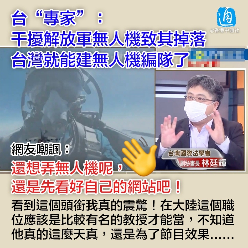 台媒報道稱,解放軍無人機於8月3日至5日連續三天進入金門等地空域巡視,台灣國際法學會副秘書長林廷輝昨日(8日)在一政論節目上“建議”台防務部門,通過電子系統干擾大陸無人機GPS系統。 他聲稱,台灣在電子系統上有很先進的科技,能夠屏蔽所有導航相關的設備,讓無人機失能。“無人機失能後可能會掉下來,如果掉在金門等地,就能被台灣所獲。多抓幾個無人機,台灣就可以組成自己的無人機編隊了!” 林廷輝的異想天開之言引來不少網友嘲諷。有網友稱,解放軍無人機用的是北斗軍用定位系統,不是GPS。 “看到‘台灣國際法學副秘書長’這個頭銜我真的震驚!”也有網友質疑林廷輝才不配位:“按照大陸的標準,(這個職位)應該是比較有名的教授才能當,不知道(他)真的這麼天真,還是為了節目效果......” 還有了解軍事的網友解釋,解放軍無人機已經可以在斷絕外部連接的情況下,通過AI(人工智能)識別來自動駕駛。“就是說任何電磁環境都無法影響無人機駕駛,只能通過導彈來擊沉。問題是能擊沉無人機的導彈,普遍比無人機貴。” 也有網友認為大陸應該“每個無人機上面都有彈”,質疑台“專家”這種想法“真不怕掉下來炸死(台民眾)嗎?” 至於林廷輝拿所謂“台灣有先進的電子系統”來背書,有網友則聯想到近日台灣大學官網出現“世界上只有一個中國”、台便利店電視屏幕播出“戰爭販子佩洛西滾出台灣”等疑似黑客入侵事件,嘲諷稱:“還想弄無人機呢,還是先看好自己的網站吧!” 台媒早前報道稱,解放軍無人機進入金門上空,台方發現後施予信號彈“驅離”。 台軍前中權軍艦艦長張競在一政論節目上指出,台軍選擇信號彈“驅離”,面子上蠻難看的,但是若擊落無人機就會挑起戰爭。他認為此次台海局勢比1996年“更糟糕”,因為“現在台灣毫無自主權,人家(佩洛西)要來就來,要不來就不來。毫無自主性就會淪為被人擺布的棋子,當然很難看。”