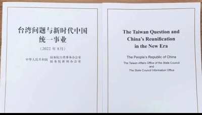 中國發表涉台白皮書:有力回擊“台獨”與建構統一藍圖 香港中通社8月10日電 中國國務院台灣事務辦公室、國務院新聞辦公室10日發表《台灣問題與新時代中國統一事業》白皮書,受訪學者表示,白皮書對“台獨”勢力與外部勢力的錯誤言行作出回擊與駁斥,更為兩岸統一建構出卓越非凡的藍圖。