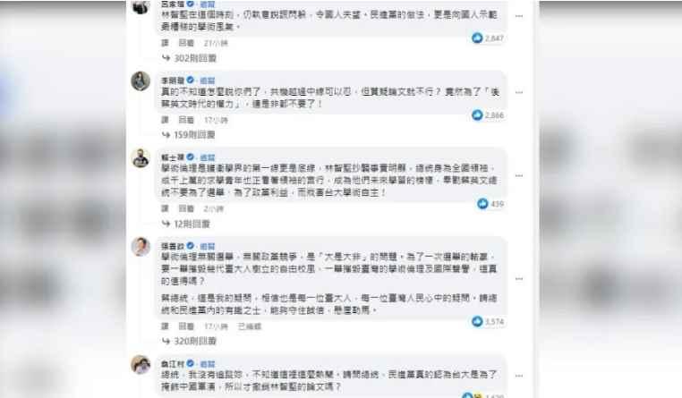 此文迅速掀起熱烈討論。台灣網友紛紛留言: “一人搞垮全黨。” “(民進黨)黨內反彈一定很大。” “躲什麼?就是要看大型翻車現場。” “誰上車誰就終身烙印對幹台大。” “全躲三民(三立、民視)。”