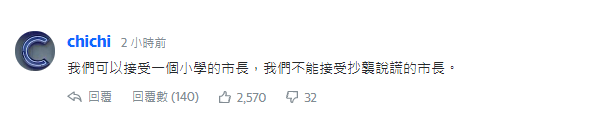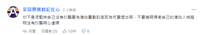 (圖源:中時新聞網) 不過,他卻堅稱論文被認證為抄襲是“抹黑”與“攻擊”, 桃園市長選舉也被其上升為已成“多方境內境外政治角力的擂台”。 “我選擇離開桃園市長選舉的戰場,在另一個戰場捍衛自己的清白,讓選舉回歸正軌。”論文已被台大認定為抄襲,林智堅還口口聲聲地高喊清白。 林志堅821字的聲明發出後,不少島內網友紛紛揶揄: “你不是很堅持自己沒有抄襲,要為清白奮戰到底,那為何要退出,心虛嗎” ,“不要退選啦!蔡都下令全黨相信你的清白了。” 更有網友對於他“頭鐵”不承認抄襲,以及蔡英文籲民進黨全黨支持他“捍衛清白”的舉動感到無語,嗆聲道,“民進黨不是說你是清白的?你退選不就打臉民進黨,整黨團結欺騙台灣人民?”“我們可以接受一個小學(學歷)的市長,我們不能接受抄襲說謊的市長。”