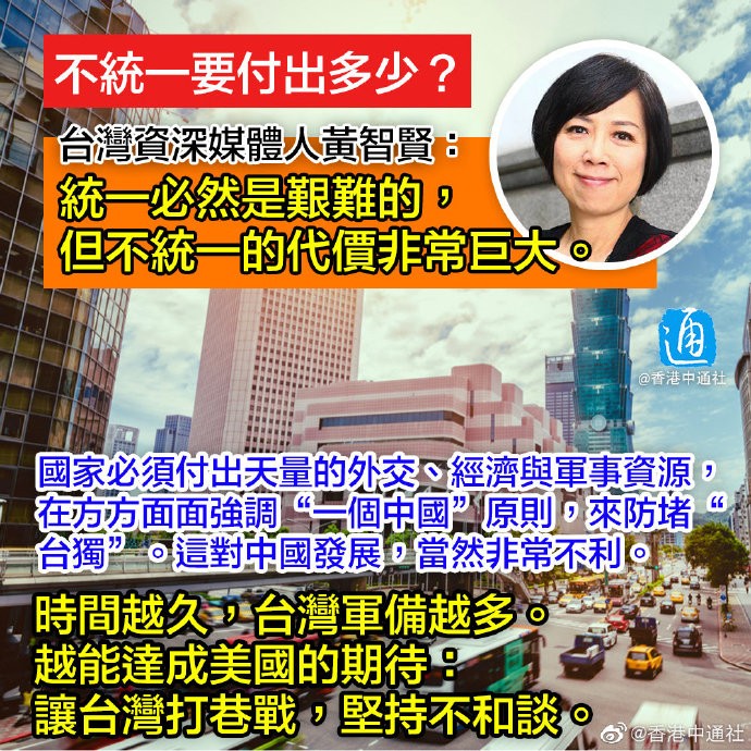 台媒體人黃智賢:不統一要付出多少?分享到: