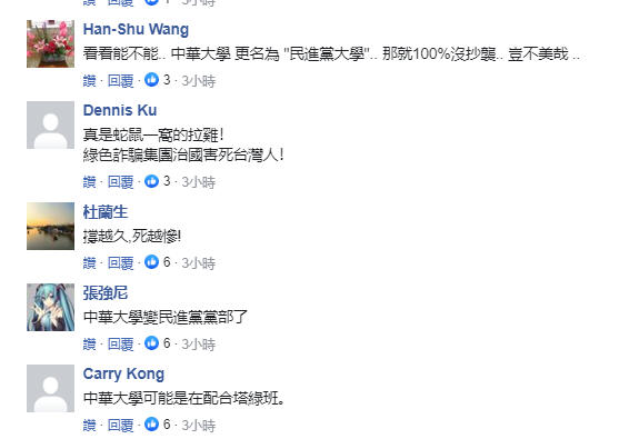 對此,有島內網友嘲諷“真高招”,認為這是以拖待變,等風頭過去後民眾就會淡忘此事。還有網友懟道,中華大學索性“更名為‘民進黨大學’, 那就100%沒抄襲……豈不美哉。” “不公布就等於公布了啊。如果‘貨真價實’那還不敲鑼打鼓嗎?大家還看不明白,中華大學在求生存嗎?不能公布醜聞,會被(民進黨)算帳,只要閉嘴,等於默認,才不會死得快!大家就饒了中華大學吧!”還有網友諷刺。