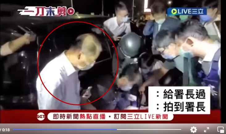 台灣內政部門警政署署長黃明昭(紅圈)在逮捕現場,手上拿著手機。(影片截圖) 台南殺警案嫌犯8月23日凌晨在新竹落網。從曝光的影片中可見,嫌犯在新竹客運站下車後,經過一台黑色轎車時,躲在車內的警員突然開門衝出,將其壓制在地,在街道四周埋伏的警員也蜂擁而上,將嫌犯逮捕歸案。 然而,網絡上包括島內各警員群組,卻在瘋傳另一段來自“三立LIVE”的影片。 這段僅18秒的影片顯示,嫌犯被警員撲倒後,現場曾傳出“攝影!攝影!”、“來,署長,給署長過一下”、“要拍到署長”等語,然後警政署長黃明昭走過來,站在鏡頭中央,手上還不停滑著手機。好像鏡頭是專門等警政署長出現而拍攝。 這波操作讓台灣網友們直呼看不懂,紛紛留言留言吐槽,“署長在抓人,54個警員在保護署長”、“連這個都要演未免太誇張了吧?”、“有功要搶,責任你扛”、“同仁殉職,這些官只想著鏡頭”。 台灣前警員石明謹看完也忍不住吐出兩個字:“惡心”。