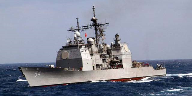 圖為美國“安提坦”號導彈巡洋艦 來源:央視網