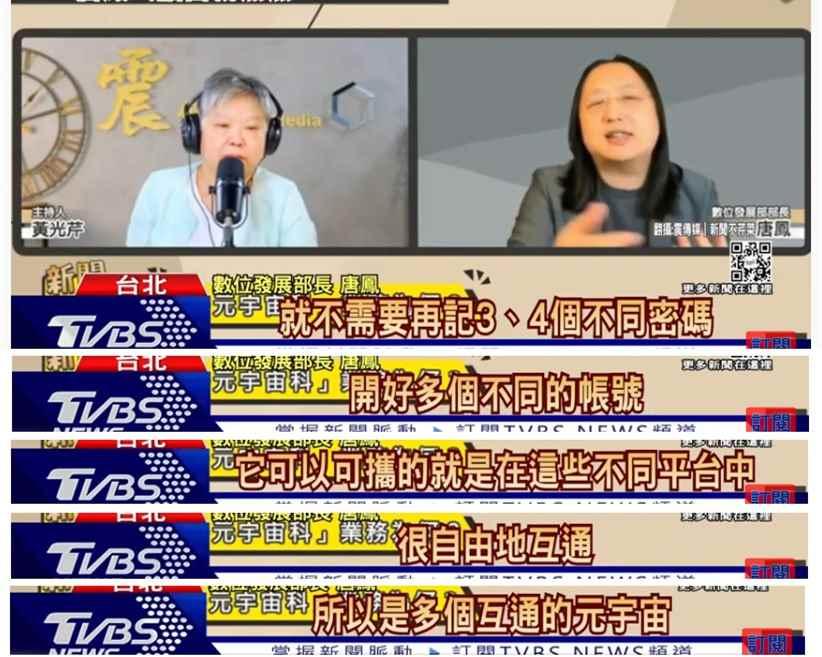 (視頻截圖) 昨日(9月8日),唐鳳接受島內網絡節目採訪,再次解釋“多元宇宙科”。她說,該單位工作是要研究“跨平台互通性的標準”,增加新創產業的發展空間。 唐鳳以電信服務舉例,指民眾若覺得手機信號差,是可以“攜碼”換電信公司的,也就是保留原本的號碼和新的電信公司簽約;而且銀行跨行轉帳,現在有些也可以使用手機號碼轉帳。這就是所謂的“互通性”。 唐鳳表示,但是場景換到跨境平台,臉書的帳號不能登入Google,反之亦然。也就是說,如果要使用臉書、Google、蘋果,就得設立三個帳號、記三組不同密碼。 “這需要花幾百億?甚至成立部門?” 對於唐鳳的解釋,本就對“多元宇宙科”業務一頭霧水的台灣民眾們更懵了,認為這並不是緊急且必要的事情,反而增加被盜號風險,“看起來(多元宇宙科)真的是沒有必要的單位。”