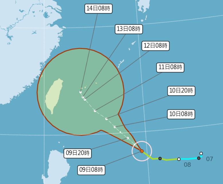 台灣氣象部門9日表示,輕度颱風梅花未來有增強為中度颱風的趨勢,發布海上警報機率高,時間大約在11日或12日,將繼續觀察是否發布陸上警報。氣象部門預測梅花的外圍環流可能為台灣東半部、東北部及北海岸帶來大雨。(香港新聞網10日綜合) 【編輯:鄭竣凱】