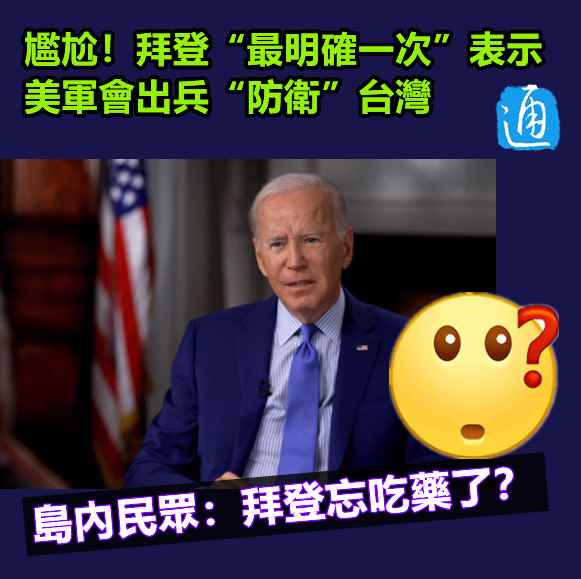 尷尬!拜登“最明確一次”表示美軍會“防衛”台灣,島內竟沒人信香港新聞網9月20日電 美國哥倫比亞廣播公司(CBS)最新一期的“60分鐘”訪談節目中,美國總統拜登表示,如果中國大陸“侵台”,美國會出兵“防衛”台灣。 消息傳到島內後,綠媒興奮了,“點明”這是拜登對台態度“最明確一次”。然而尷尬的是,大批島內民眾根本不信美軍會“協防台灣”,有人就不客氣地說:“拜登是不是忘吃藥了?”還有人翻出舊賬,說“當初(拜登)也是這麽承諾烏克蘭的!”