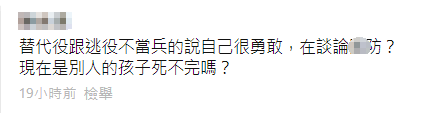 還有人忍不住笑了,直呼“一年的替代役,笑死,拿到槍會開保險嗎?” 更有台灣網友嘲諷民進黨:論文抄襲的批評寫論文的,當替代役的批評當過兵的。 事實上,台灣綠營為跟大陸對抗打出“抗中保台”牌,台灣民眾早已怨聲連連。島內多項民調顯示,過半民眾並不願意上戰場,對蔡英文兩岸政策不滿意的也有過半人,最近一次台灣“陸軍專科學校”招生,更只有200多人報到。台媒稱,有知情人士透露,許多家長害怕當前兩岸局勢緊張,不願讓子女從軍。 柯文哲就曾批評林飛帆之流,只會喊口號不做事,淪為口號治台,“那些喊口號的人我就要問他說,你們做了什麼準備?做了什麼努力?” 【編輯:石欢欢】