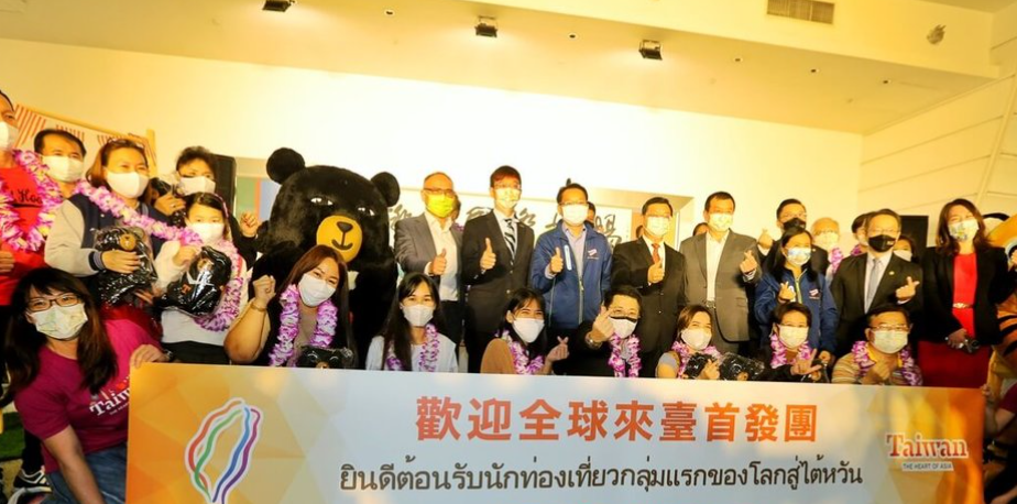 隨著台灣邊境解封,從泰國來台的2個旅行團共45人,13日凌晨搭機抵台,台疫情指揮中心指揮官王必勝及交通部門觀光局官員前往接機並送上伴手禮,抵台旅客表示,出於對台灣風土民情的喜愛,因此搭解封首發旅遊團來台。(香港新聞網13日綜合) 【編輯:鄭竣凱】