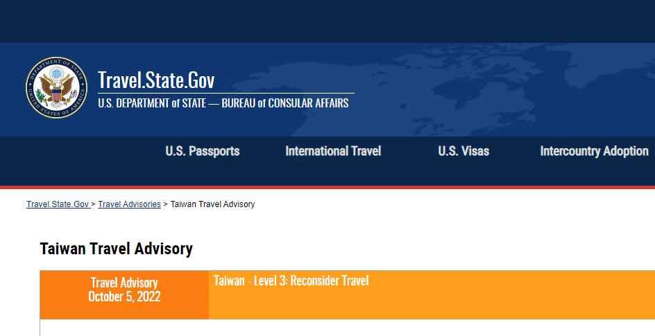 美國國務院官網截圖 台灣“0+7”入境新制13日起上路,所有入境者不再需要居家檢疫,改採7天自主防疫,遊客、境外生及外籍勞工等都適用。 不過,美國國務院官網對台灣地區的旅遊警示仍列為第3級(Reconsider Travel)。對此,指揮中心當天在疫情記者會上回應稱,美國國務院官網上的旅遊狀態警示公告,主要是針對邊境管制措施進行分級。今年4月起,台灣被列入第3級,目的是提醒美國民眾赴台需要進行檢疫措施,其中影響最大的就是隔離。 指揮中心說明,台灣邊境管制措施已從13日起解除,入境者無須再居家檢疫,7天自主防疫期間,無症狀者持有2天內快篩陰性證明可自由外出。因此將委託有關部門向美方溝通,希望盡快修正等級,後續也會持續追蹤等級變化情況。(完) 【編輯:李雪萍】