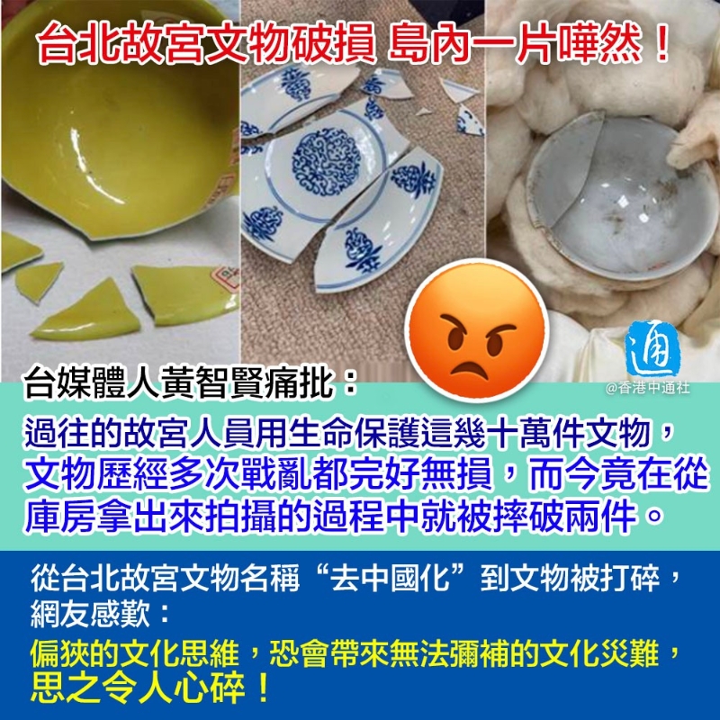 媒體人談台北故宮文物破損:文物歷經戰亂都完好無損,如今卻摔破兩件!分享到:
