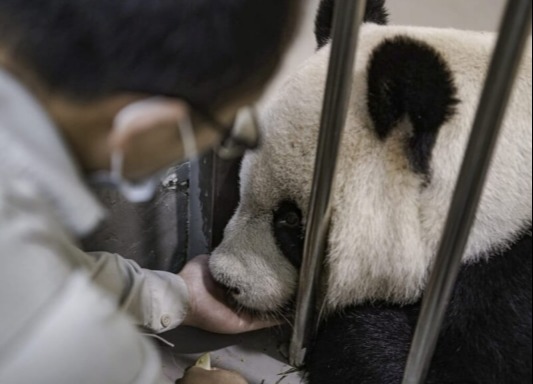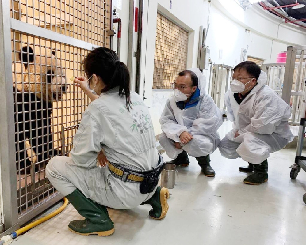大陸專家探視贈台大熊貓“團團” (香港中通社圖片)
