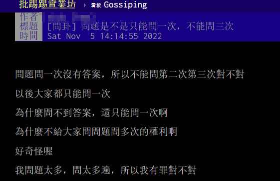 香港新聞網11月7日電 日前,在台北市長選舉唯一一場電視辯論會上,民進黨候選人陳時中開嗆對手蔣萬安“問題問3次有點多餘”,事後民進黨當局領導人蔡英文也在一旁幫腔,諷刺蔣萬安“問幾百遍聽不懂”。 然而,幾年前,蔡英文還未宣誓就職台灣地區領導人時,可不是這麼說的……