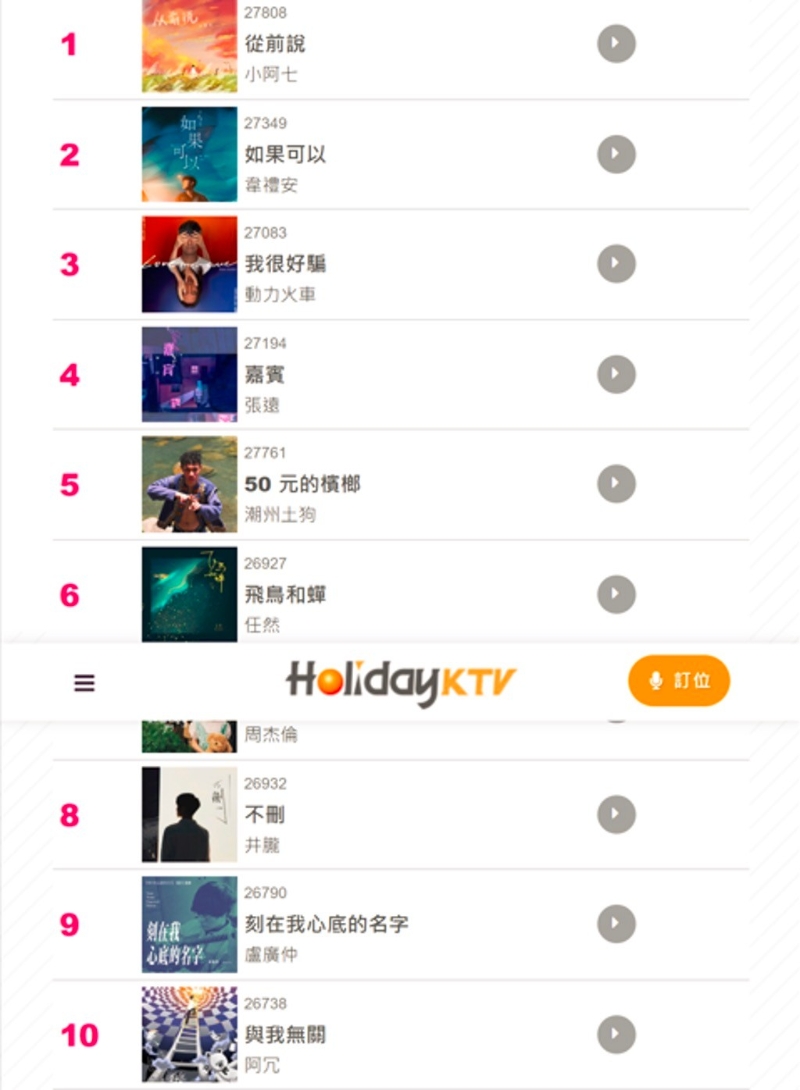 香港新聞網11月7日電 台灣流行音樂過去曾在樂壇佔有一席之地,然而隨著時代的變遷,影響力似乎大不如前。有網友近日發現,現在台灣KTV點播排行榜上,前10名中大陸歌曲佔據半壁江山,感嘆“時代真的不一樣了”。貼文一出引發熱議,有網友表示這是“跑不掉的趨勢”。 據報道,該台灣網友發文表示,最近他與公司裡20幾歲的年輕人聊天時,想了解最近流行什麼歌曲,因此上網查詢某KTV點播排行榜。結果發現前10名中有一半都是大陸歌手的歌曲,冠軍“小阿七”也是大陸歌手。過去台灣民眾朗朗上口的周杰倫只能排第7名,像蔡依林、張惠妹等知名歌手都不在榜單上。