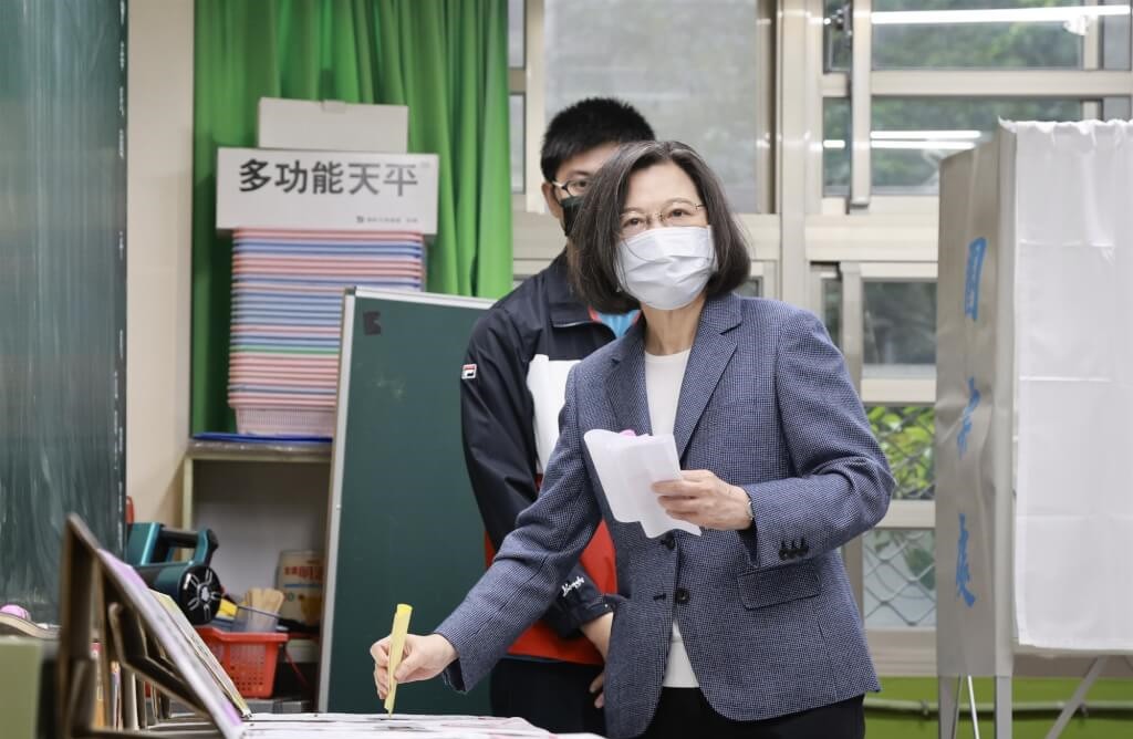 香港新聞網11月26日電 台灣地區“九合一”選舉今天(26日)投票,台當局領導人蔡英文上午在新北市永和秀朗小學進行投票。期間,她呼籲民眾踴躍投票,用手上的一票決定台灣的未來。