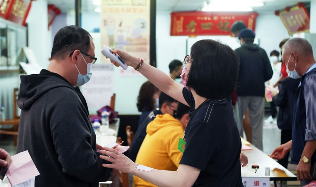 今年特別設立“防疫專用圈票處”,提供給發燒但無確診者投票,民眾入場前須噴酒精、量體溫。