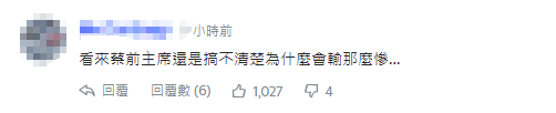 有台灣網友表示,看來蔡英文還是搞不清楚為什麼會輸那麼慘…