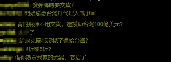 台媒炒作美擬援台100億美元 網友:買的飛彈都沒交貨…分享到: