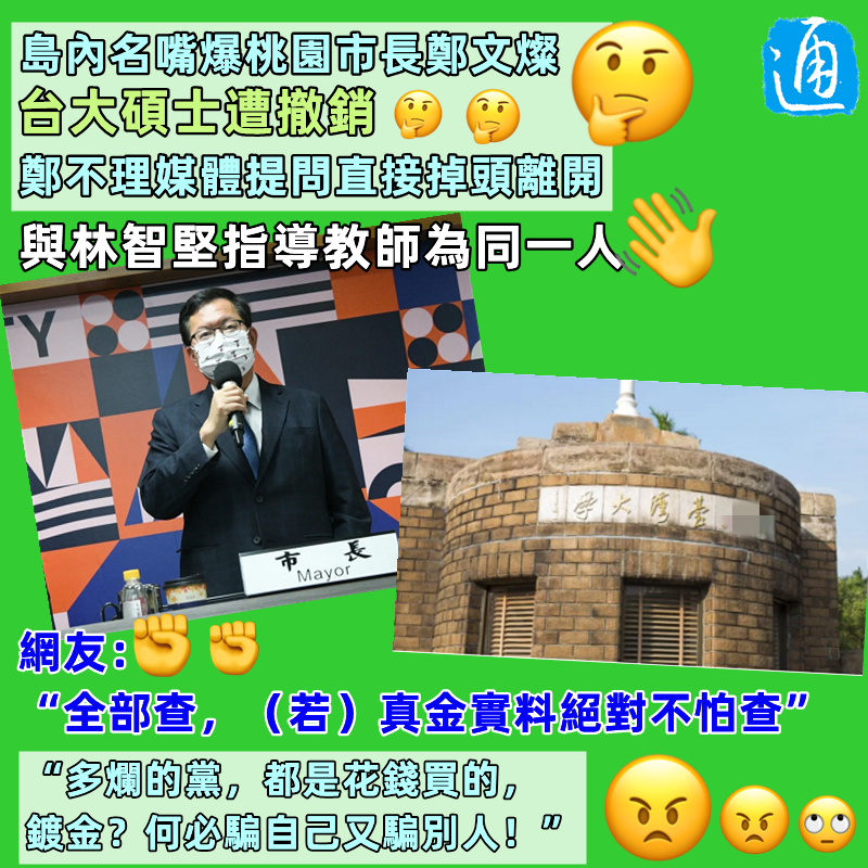 民進黨政客又出醜聞?桃園市長鄭文燦碩士學位被曝遭撤銷……分享到: