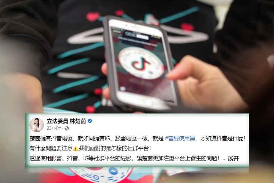 據台媒此前報導,今年3月份,林楚茵在台立法機構危言聳聽稱,抖音、小紅書等大陸軟件摻雜“認知作戰”,不能任其“無法無天”,沒想到有人發現她自己也有抖音號,甚至還拍攝多則短視頻分享,“嘴上說不要,身體很誠實”。 當時,林楚茵直接將“鍋”甩給實習生,稱該抖音號是過去團隊內的實習小編幫她設立的,使用幾個月後就停止更新了。 而在台灣民進黨當局宣佈公務部門禁用抖音後,林楚茵又想出一套所謂“知己知彼”說辭,辯稱通過使用抖音的經驗,讓她更注重平台發生的問題。 林楚茵昨日(12月12日)在臉書發文表示,她自己擁有抖音號,跟擁有Instagram、臉書帳號一樣,“就是曾經使用過,才知道抖音是什麼,有什麼問題要注意,我們面對的是怎樣的平台”,而她擔任“立委”以來,持續監督任何透過社交平台散播的錯假消息,還有試圖操作輿論、個資外流等問題,抖音也是她一直在關注的議題,絕不是“綠能你不能”。 林楚茵聲稱,抖音這類網路社群軟件,沒有任何事實查核的機制,所有人都可建立賬號與上傳影片,所以充斥著虛假訊息,更成為大陸“認知作戰”的溫床。 最後,林楚茵還“委屈”上了,抱怨稱在台灣有特定媒體一再邏輯錯亂,曲解她對於社交平台的監督,認為這是“縱容犯罪”,嘲諷與梗圖或許能幫忙創造流量,卻無法解決“大陸正透過抖音等平台企圖媒響台灣的事實”……