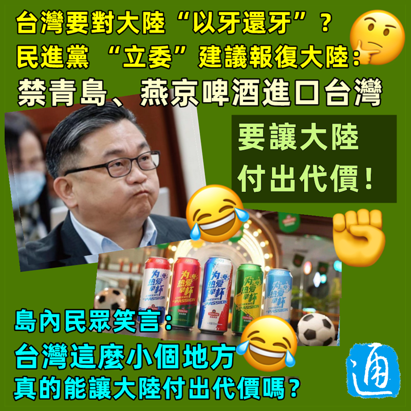 圖片製作:汪彥希 綠營(民進黨)“立委”王定宇更想出一個報復大陸的“好對策”,建議台灣採取“報復性措施”“回敬”大陸,包括禁止大陸的一些酒類品牌,例如青島、燕京等,對標大陸暫停輸入金門高粱酒及台灣啤酒等。 據台媒報道,王定宇聲稱,大陸“莫名其妙霸凌”台灣的生意人,稱台啤這次被禁,雖然銷往中國大陸的營業額僅130萬元(新台幣,下同)、年營業額58億,但相對中國大陸品牌啤酒2021年銷往台灣達21.6億元,詢問台當局會否採取相關制裁作為,或乾脆針對中國大陸品牌燕京、青島啤酒禁止輸入…… 他還妄言,台灣可以考慮加入美國芯片制裁方案,限制出口大陸非買不可的台產IT、芯片相關產品。叫囂要讓大陸付出代價,“否則,永遠都吃定你(台灣)”。 不過,這一系列“宏大”的報復想法,先被台“經濟部次長”陳正祺打臉了!陳正祺回應稱,台灣不大,經濟體規模也只屬中等,必須視個別情況來因應。強調兩岸的問題,台“行政團隊”會謹慎處理。 王定宇的“報復大計”傳開後,有島內民眾諷刺,難道王定宇是在籲台灣民眾“集體戒酒”? 根據2021年全球啤酒品牌暢銷排行榜來看,大陸產的多款啤酒榜上有名,而台產的“臺虎精釀”等卻未見有名字。台灣若停止進口陸產啤酒,會對市場造成多大衝擊?答案不言自喻。 亦有人直指綠營“立委”王定宇“腦袋空空”。稱台灣買的青島啤酒是台灣的龍泉啤酒,代青島啤酒生產的,喊話台當局不要做這種莫名其妙的行為,結果又打到台灣廠商。 “這麼小個地方去報復?”還有島內網友直言報復一說搞笑——“無腦政客(民進黨)的代表總是能搞笑地博版面。” 此外,針對王定宇呼籲台當局限制出口大陸非買不可的台產IT、芯片相關產品,有網友就感歎:“台積電都已經變成‘美積電’了,先保全好自己吧......” 就民進黨當局頻稱大陸製造貿易障礙,對台灣食品企業註册采取不公平歧視待遇一事,國台辦發言人朱鳳蓮此前表示,民進黨當局持續惡意歪曲事實,純屬故意抹黑、欲蓋彌彰的政治操弄。 朱鳳蓮指出,根據海關總署第248號令要求,大陸方面對台灣食品企業提出的註册申請,有關主管部門及時予以審核,對符合要求的申請及時予以註册,對不符合要求的申請亦逐一告知具體原因,并將相關企業補充提交註册信息的期限由2022年6月30日延長至8月31日。已按要求更新註册信息并審核通過的企業一直對大陸保持正常出口。 從2021年4月至2022年8月,有充足時間妥善處理台灣食品企業相關註册事宜,部分台灣食品企業註册信息不完整、不規範的問題也并不難解決。民進黨當局不但不采取有效措施協助有關企業,反而將大陸正常的食品安全監管措施污衊為“貿易障礙”、“歧視待遇”,充分暴露他們漠視島內業者的利益、謀求一黨政治私利的本質。 【編輯:汪彥希】