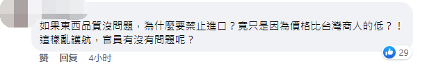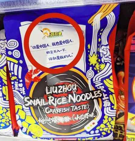 被炒作成“統戰”食品的大陸製螺螄粉。(圖:截自台灣“基進黨”台南市議員李宗霖臉書) 日前,因包裝上一句“你是中國人,我也是中國人,四捨五入一下,你就是我的人”,大陸製螺螄粉被島內綠營炒作成一款“統戰”食品,台灣經濟部門隨即要求下架,然後,又趁熱打鐵盯上另外兩款在台小有人氣的大陸製零食——“黃飛紅麻辣花生”與“魔芋爽”,也一併不准賣了…… 台當局此舉,隨即引起台灣網友的瘋狂吐槽,不少人嘲諷民進黨當局有“被統戰妄想症”。 對於“黃飛紅麻辣花生”與“魔芋爽”兩款大陸製零食被禁,台灣經濟部門的解釋則是,“黃飛紅麻辣花生”從未准許輸台,因台灣有生產花生產品,為了“保護”島內產業,才禁止在台銷售;“魔芋爽”則是有條件“進口”,但還是先要清查業者有否進行專案申請。 “重點不是品質有問題,而是不能比較便宜??”大陸製鼻胃管因售價便宜而被停止輸台的消息傳開後,台灣網友紛紛炮轟民進黨當局又在“亂護航”,為了保護本土廠商,竟不惜讓長照家庭增加支出,質疑一樣品質為何台灣廠商價格更高,“是不能降,還是不想降?”,“官員有沒有問題呢?”