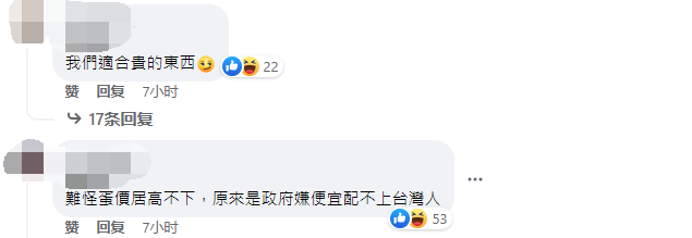 有台灣網友吐槽:終於找到台灣物價上漲的原因了!難怪蛋價居高不下。