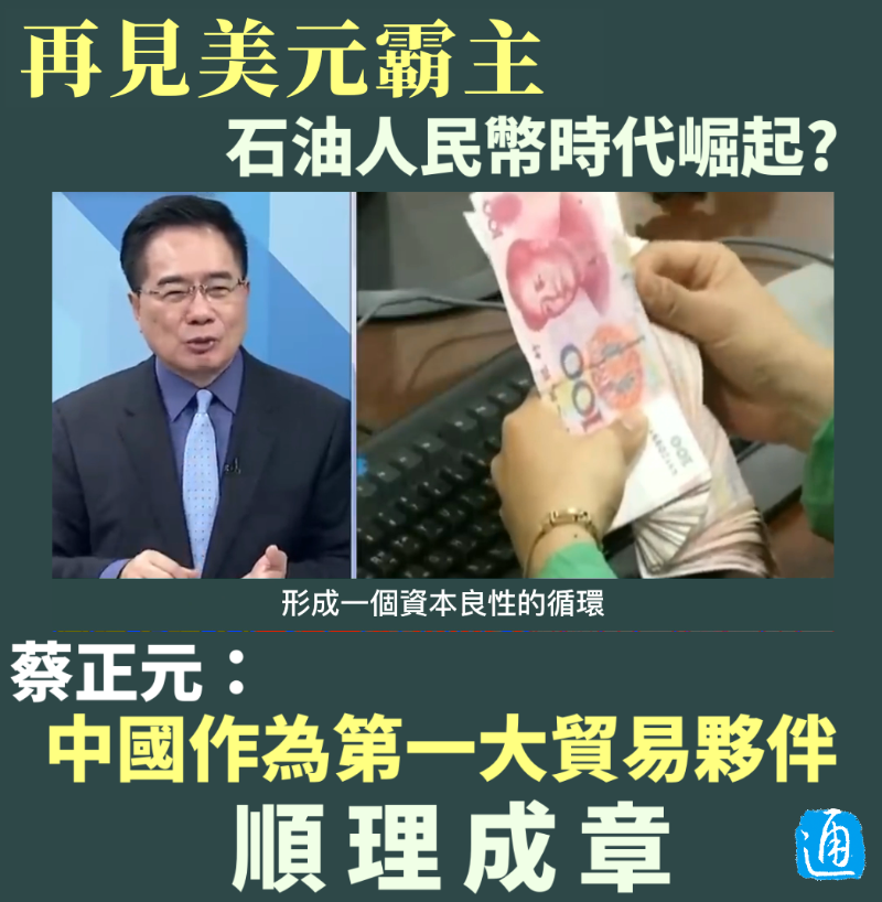 石油人民幣時代崛起?蔡正元:中國作為第一大貿易夥伴順理成章分享到: