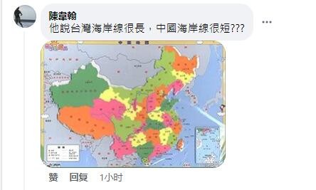 對此,還有網友曬出了地圖,反問道,“大陸海岸線很短???”