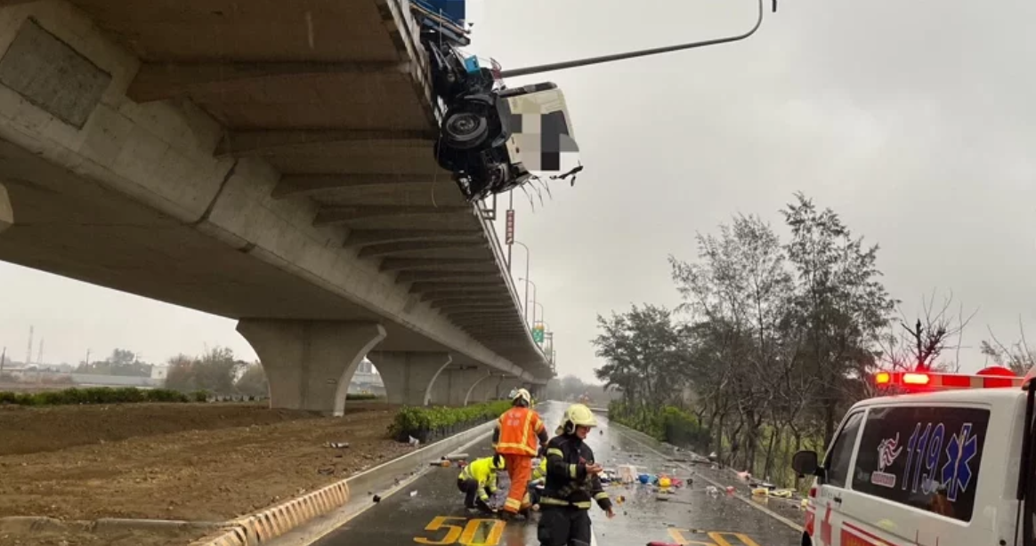 桃園市新屋區路段,5日早上一輛聯結油罐車往南行駛至該處,疑似車速過快突然衝撞高架橋護欄,整個車頭衝出護欄掉落,駕駛男子墜落道路重傷,消防局人員到場發現已無心跳呼吸,緊急送醫急救,重傷不治。 ● 屏東大武營區歷史建物隊史館大火