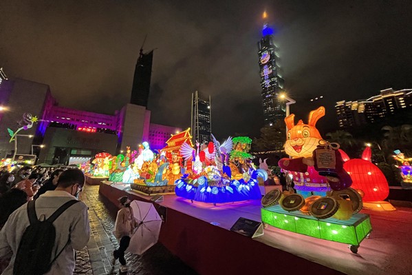 台北燈會 香港中通社圖片 台灣燈會當晚舉辦開燈儀式,為期14天的活動正式開展。各展區下午已湧入大批民眾,服務站及救護站人員進駐待命,警方也派員在重要路口疏導交通。 儀式上,蔣萬安與蔡英文同台現身,當局副領導人陳建仁、前台北市長柯文哲也到場。蔣萬安致詞表示,睽違23年,台灣燈會回到發源地,今年燈會也是疫情後首次大型活動。 這次燈會搭設光源舞台、未來舞台、多元舞台,三大舞台各有不同演出時間及內容;主燈“玉兔壯彩”設於孫中山紀念館,每晚均會安排表演。 台北市觀傳局統計,截至下午4時,參展人次累計破32萬人次;孫中山紀念館、東區、信義、101四大展區附近捷運站累計疏運破10萬人次,較上月同期增加2.3萬人次。(完) 【編輯:李雪萍】